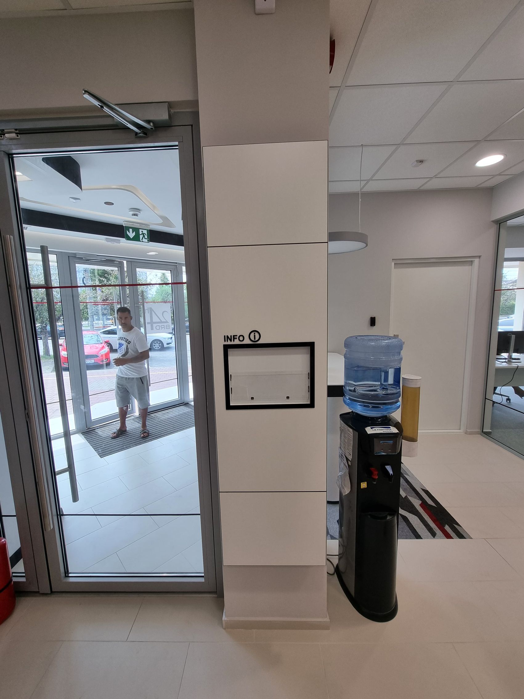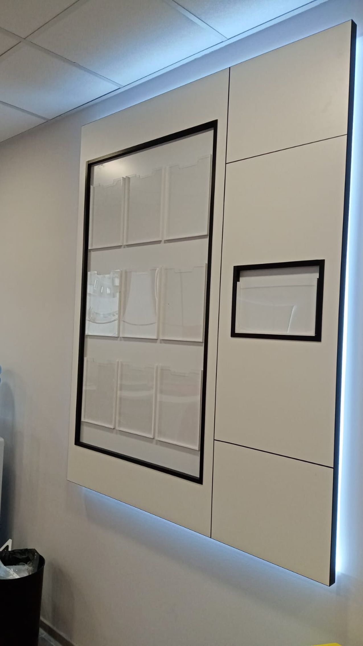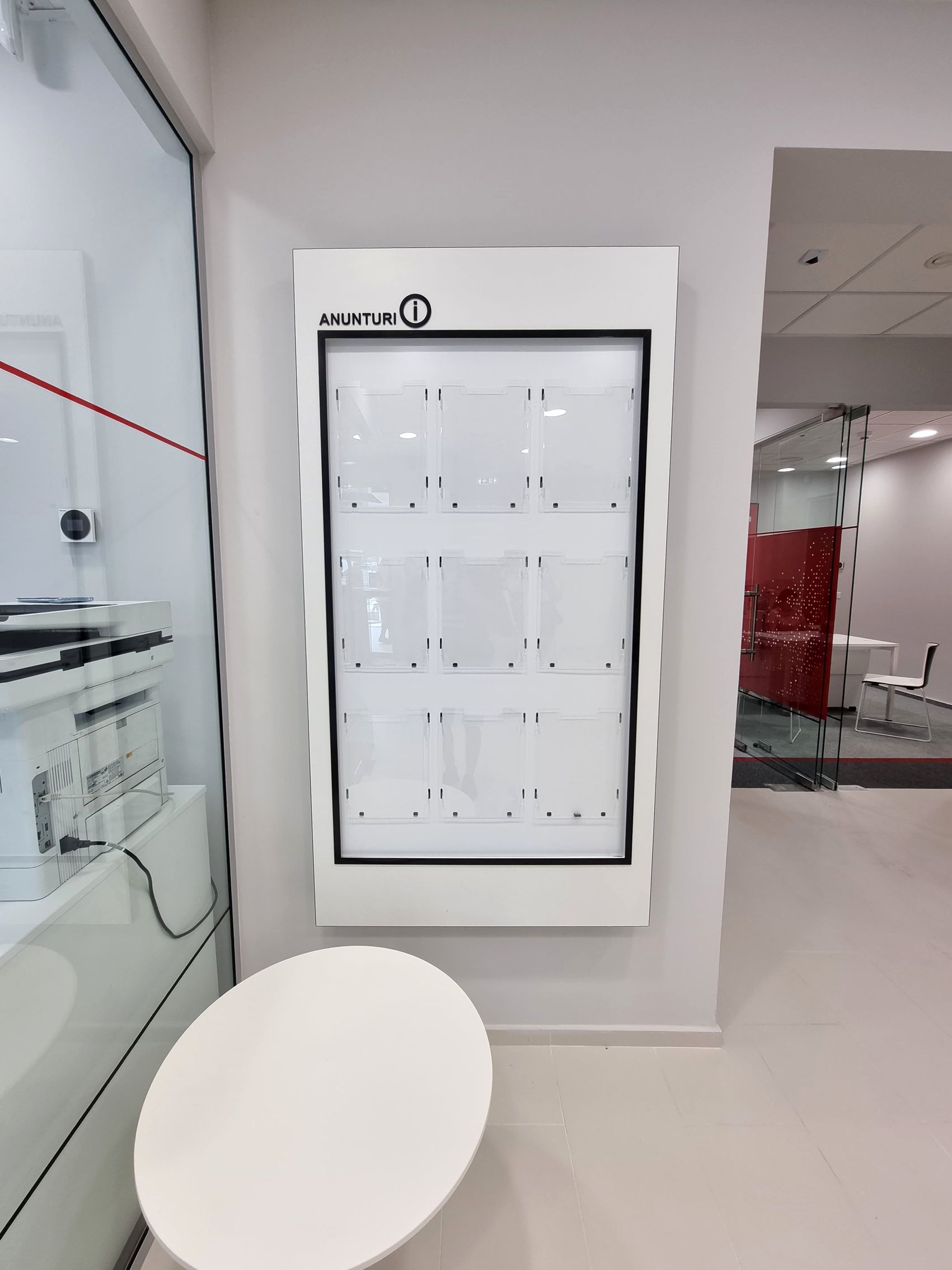 Aceste panouri sunt utilizate pentru afișarea de mesaje clare: denumiri de spații, reguli, informații utile sau elemente de orientare. Designul este adaptat identității vizuale a brandului și este frecvent întâlnit în birouri, clinici, instituții, showroom-uri și spații corporate.