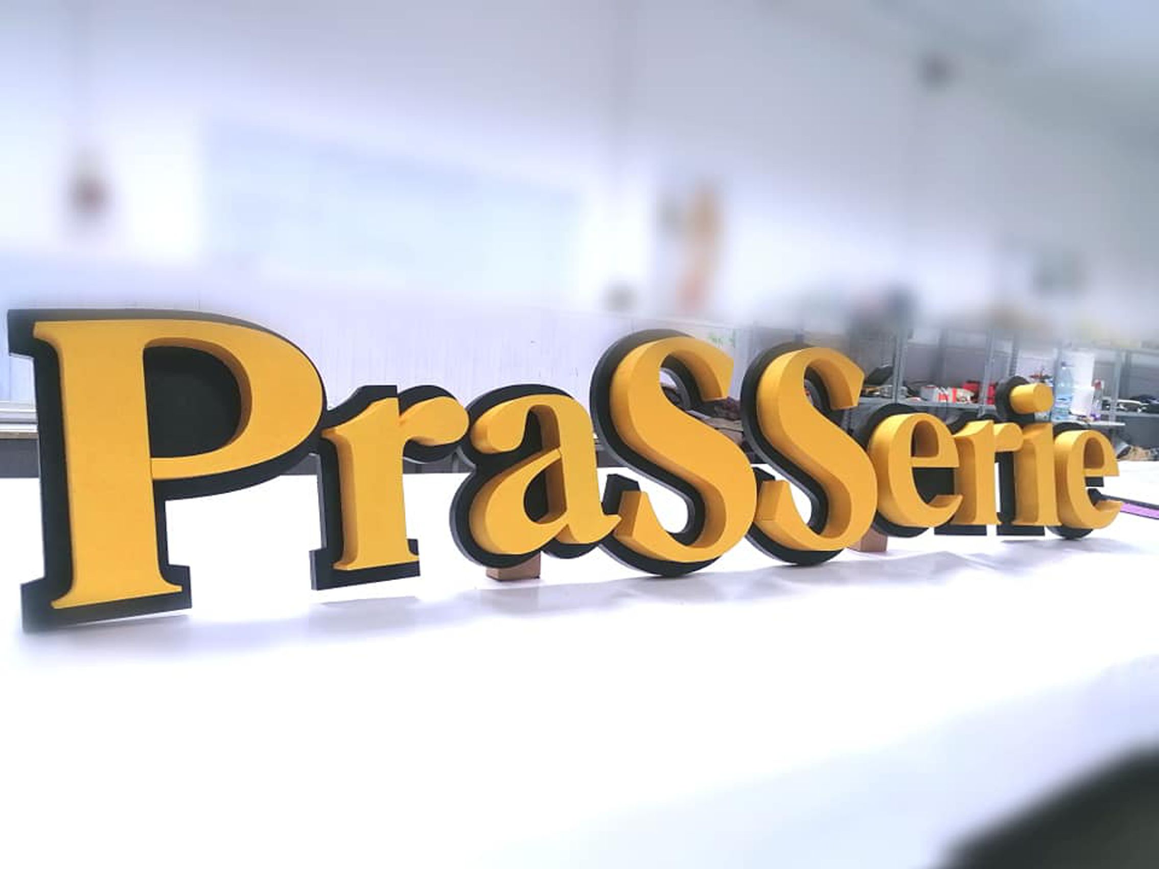 Sunt cunoscute și sub denumiri precum litere volumetrice neluminoase, semne 3D, sigle neluminoase, elemente decorative tridimensionale sau branding interior fără iluminare.