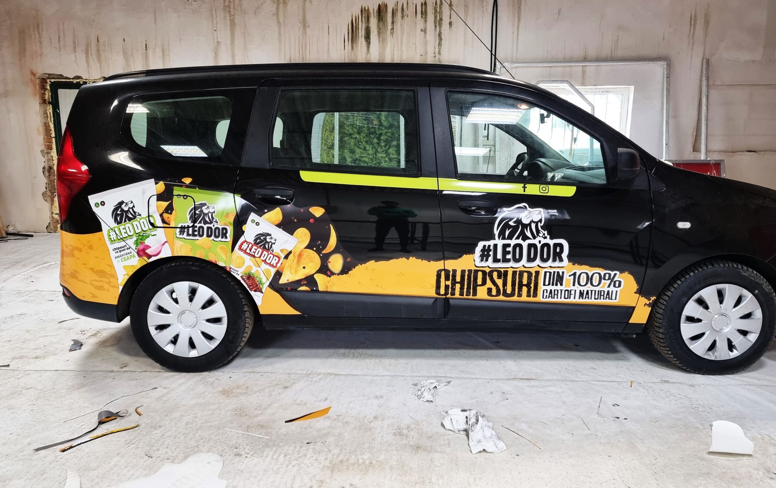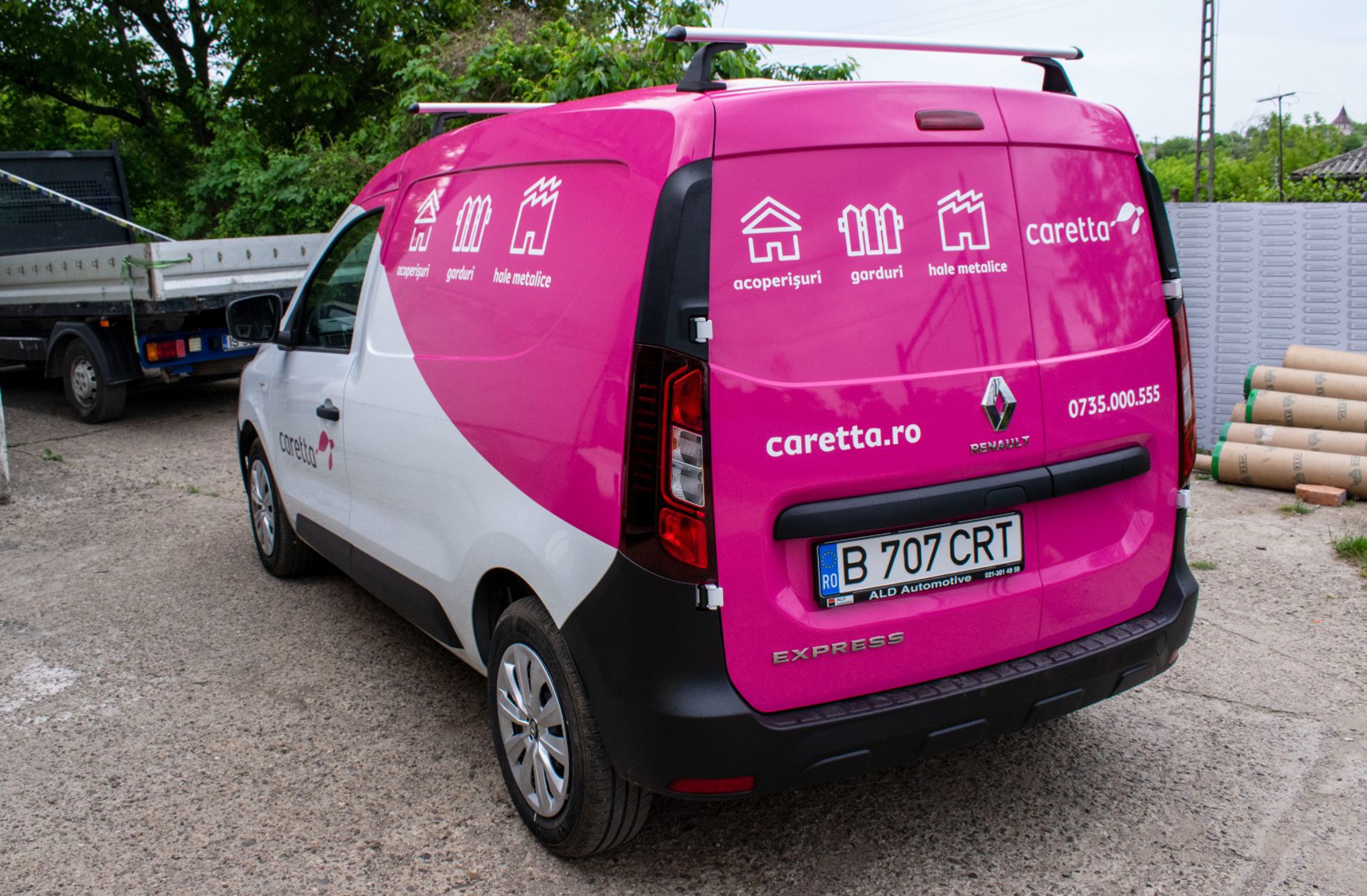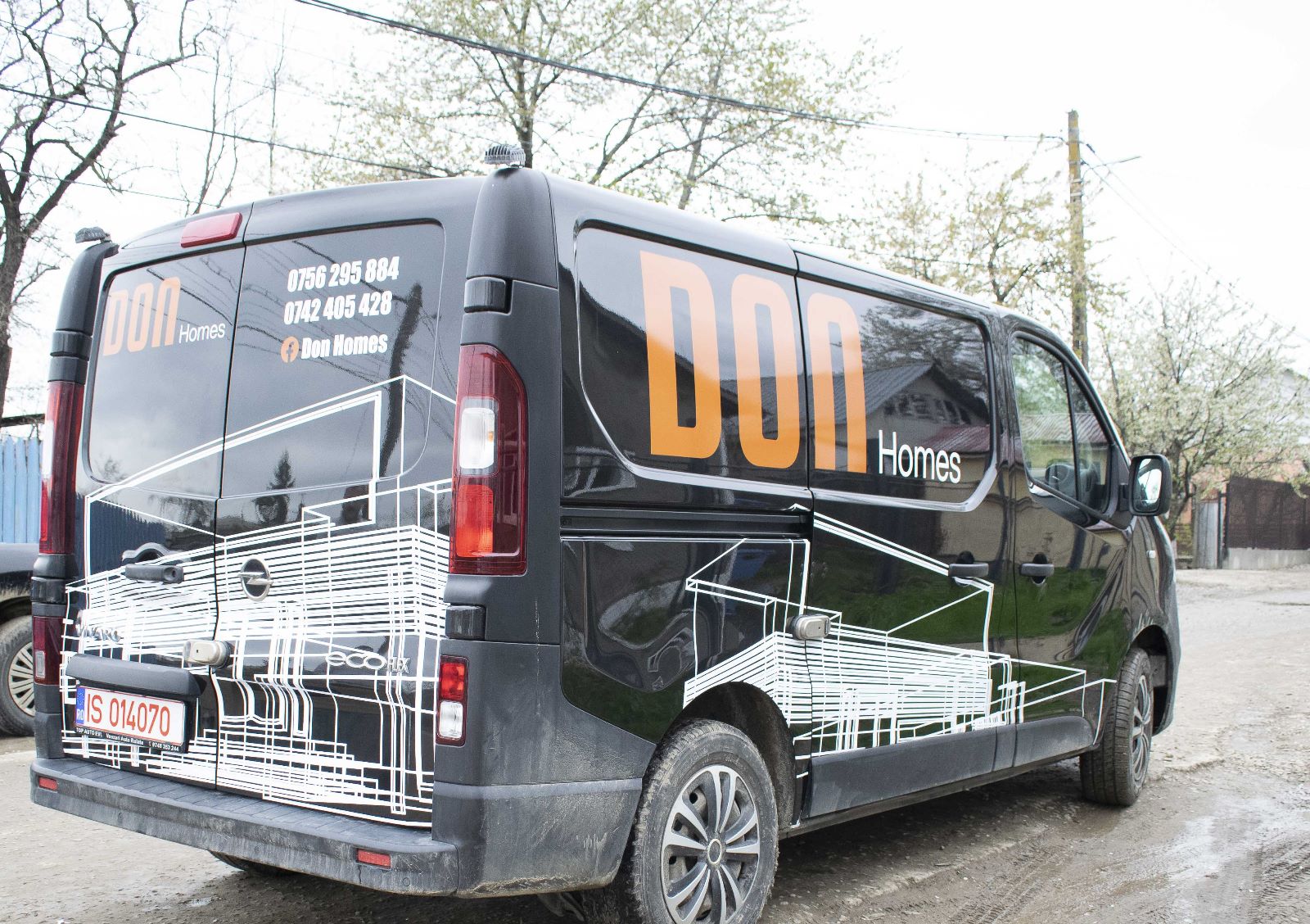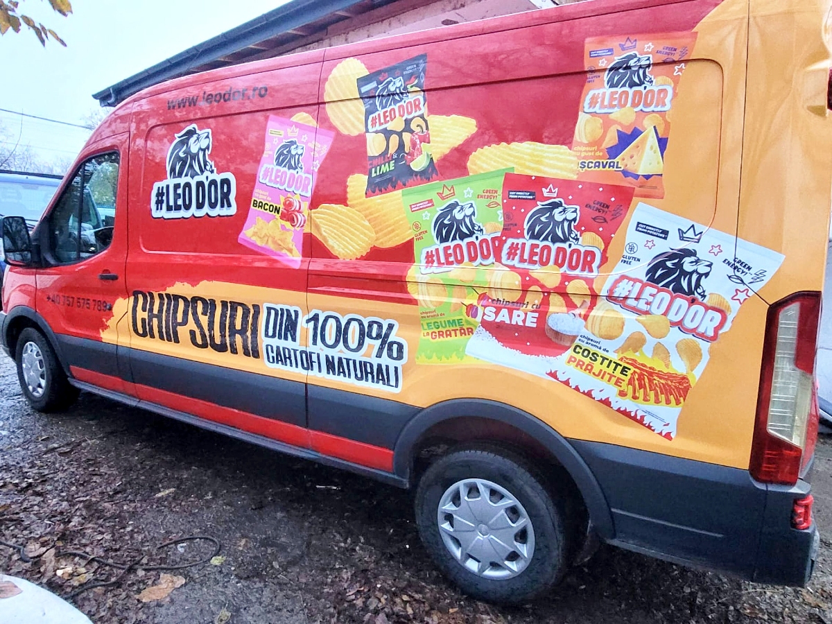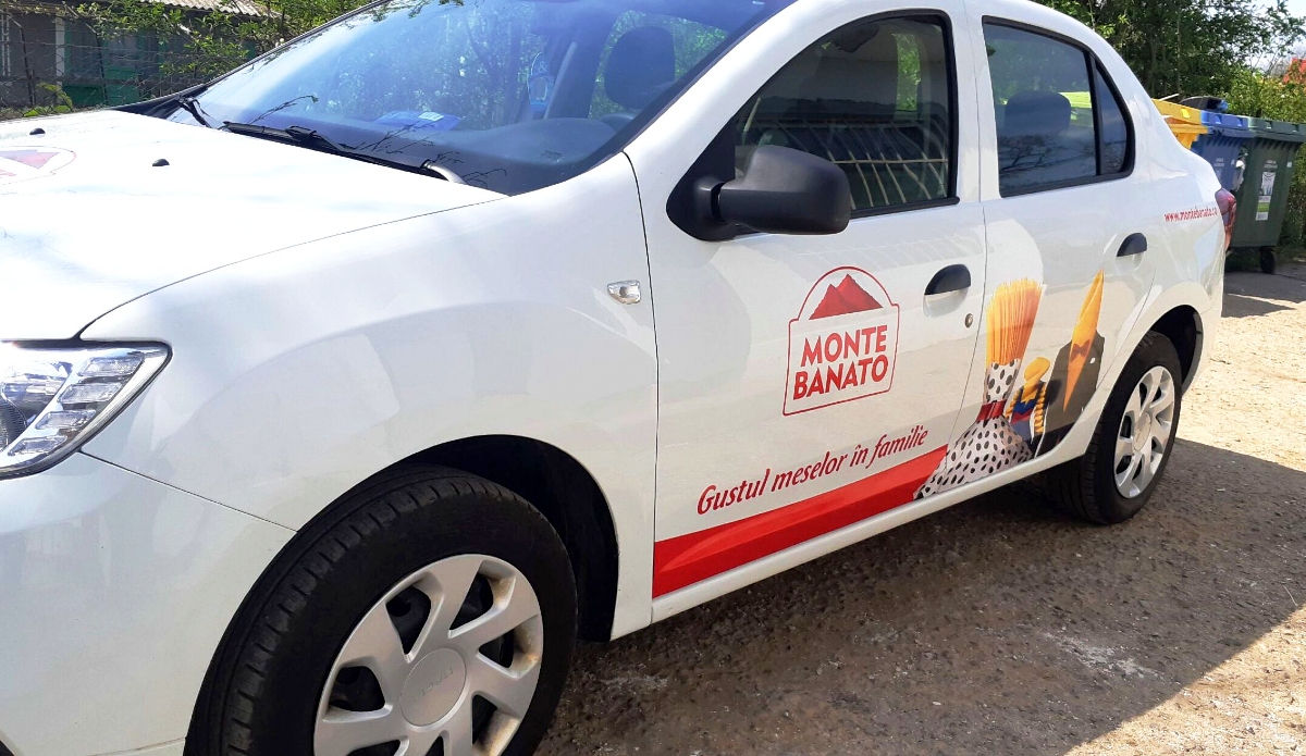 • Logo, slogan, website, telefon, servicii – aplicate pe uși, capotă, lunetă